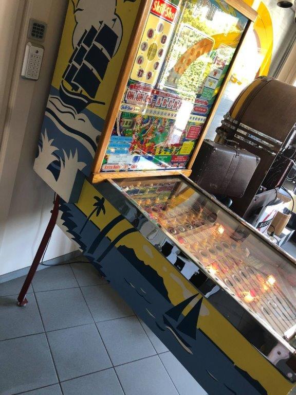 Wij presenteren u deze keer een Bally bingo Bounty uit het gouden jaar 1963. Prachtige nieuwstaat ! Deze machines werden uitgezet in de cafés, bars en casino's als gokautomaat. Deze Bounty is gans herschilderd door vakman alsook een nieuw spiegelglas en herchroomd. Je had verschillende speelmogelijkheden, dus bv. min 3 op rij, maar ook de skill-shot was een spel apart...thuislevering en 5 jaar waarborg inbegrepen. Met deze bingo hoef je niet te spelen tegen of met vrienden, je kan je in je eentje dol amuseren en...je hoeft er geen geld in te steken. Prijs alleen via Jukeboxplezier@skynet.be.