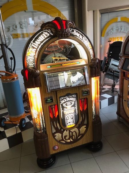 Iets very special, zeker voor de whiskyfans onder ons, nl, deze nieuw geproduceerde Rock Ola Bubbler J & B uitvoering, gevuld met 100 cd's, nette uitgetypte titelkaarten, met een mooi cd-inhoudsmapje gratis bovenop, 5 jaar waarborg, levering, factuur, deftige uitleg bij het leveren ivm de werking, enz...beste prijs = alléén via jukeboxplezier@skynet.be.