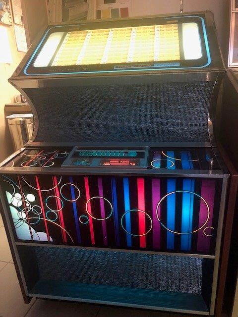 Deze mooie Rock Ola model 449 uit 1972, 5 jaar waarborg, 50 singles inbegrepen, factuur, thuislevering voor een prijsje van een goeie 2.500,00€ (btw incl), Supersound!