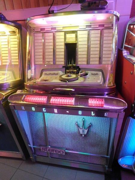 Rock Ola Empress uit 1962, 120 selecties, een mooie machine die de Cadillac periode weerspiegelt in zijn design.