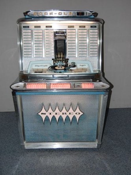 Très beau et original (belge) Rock Ola Regis de 1960, 120 sélections. Prix : uniquement via jukeboxplezier@skynet.be.