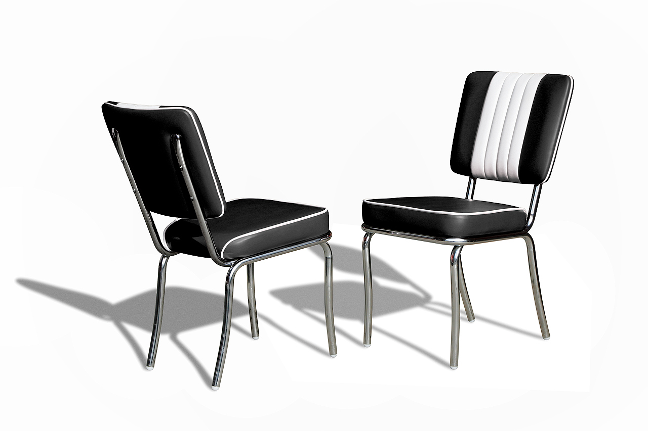 De retro eetkamerstoel komt met een kunstleren bekleding, welke brandwerend is, heeft 4 verchroomde poten inclusief dopjes ter bescherming van de vloer en komt met een herkenbare witte streep in het midden van de rugleuning. De Bel Air Retro Eetkamerstoel CO-24 Zwart is een echt Bel Air product en daarom van uitstekende kwaliteit. De retro eetkamerstoel is een must have voor elk retro interieur en zal een absolute eye catcher zijn!
