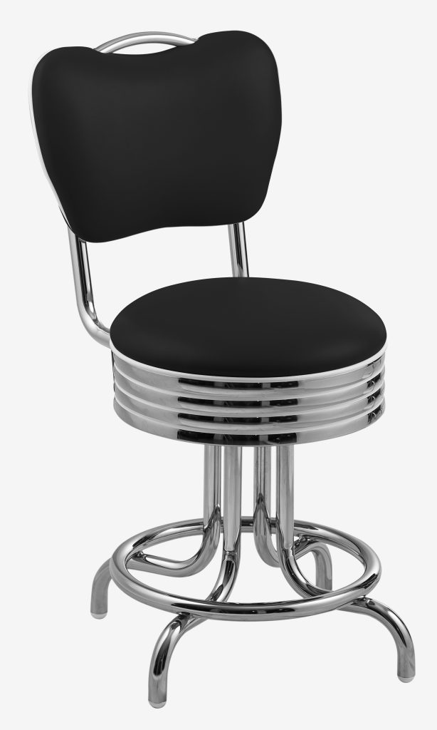 Stool with frame made of steel tube 25 mm diameter, 1.5 mm thick, bent and welded using a robotic system, with trivalent chrome plating finish.