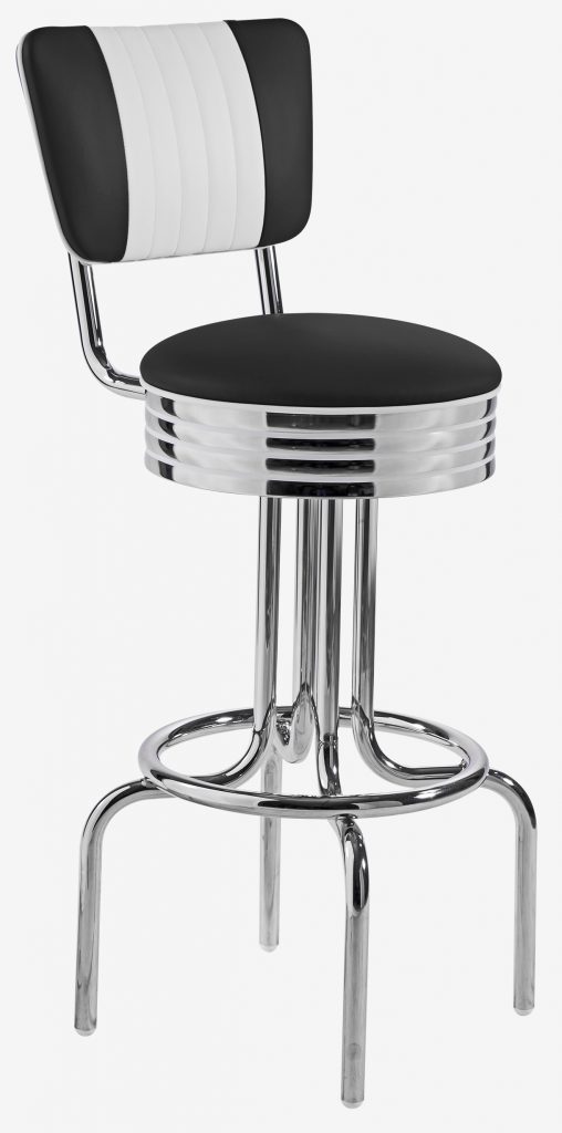 Stool with frame made of steel tube 25mm diameter, 1.5 mm thick, bent and welded using a robotic system, with trivalent chrome plating finish.