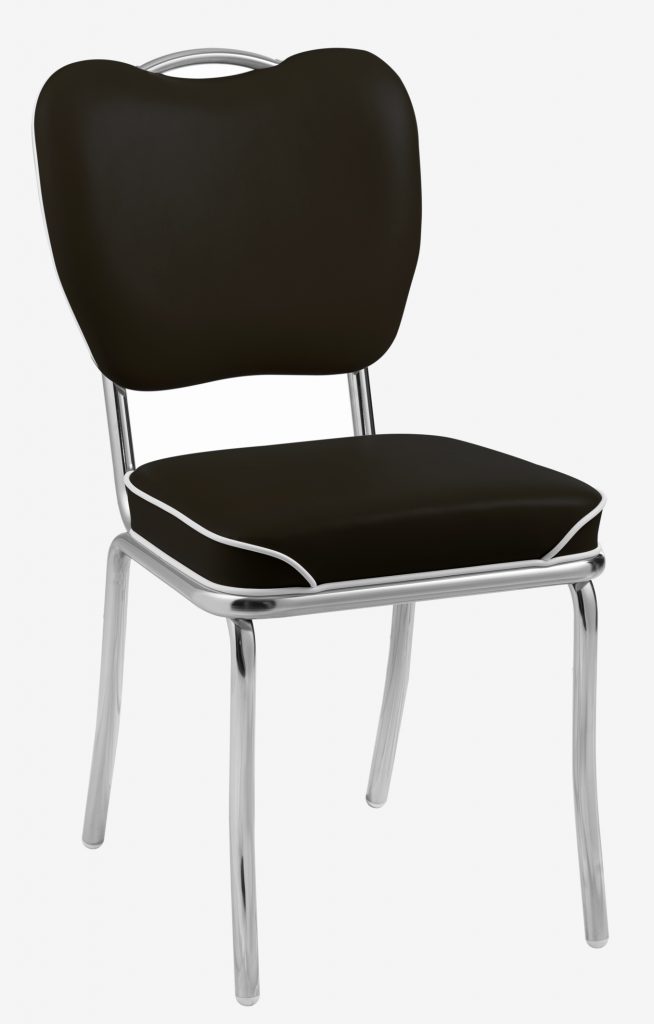 Chair with frame made of steel tube 25 mm diameter, 1.5 mm thick, bent and welded using a robotic system, with trivalent chrome plating finish. Panels made of plywood bent and shaped using heat, self-extinguishing 40Pk density polyurethane on seat, and soft 30Pk on backrest. Upper and lower edges of seat with high quality finish, backrest finished by hand with upper chrome-plated armrest.