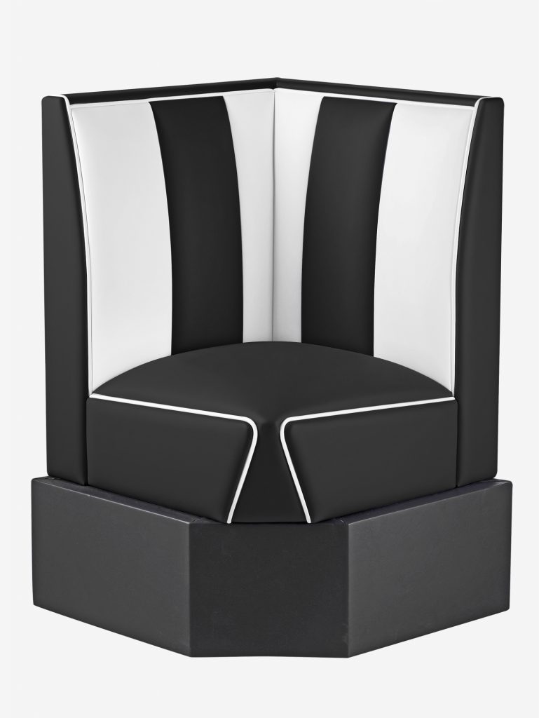 Corner booth for compositions with load-bearing frame made of fir and plywood withMDF cladding.
