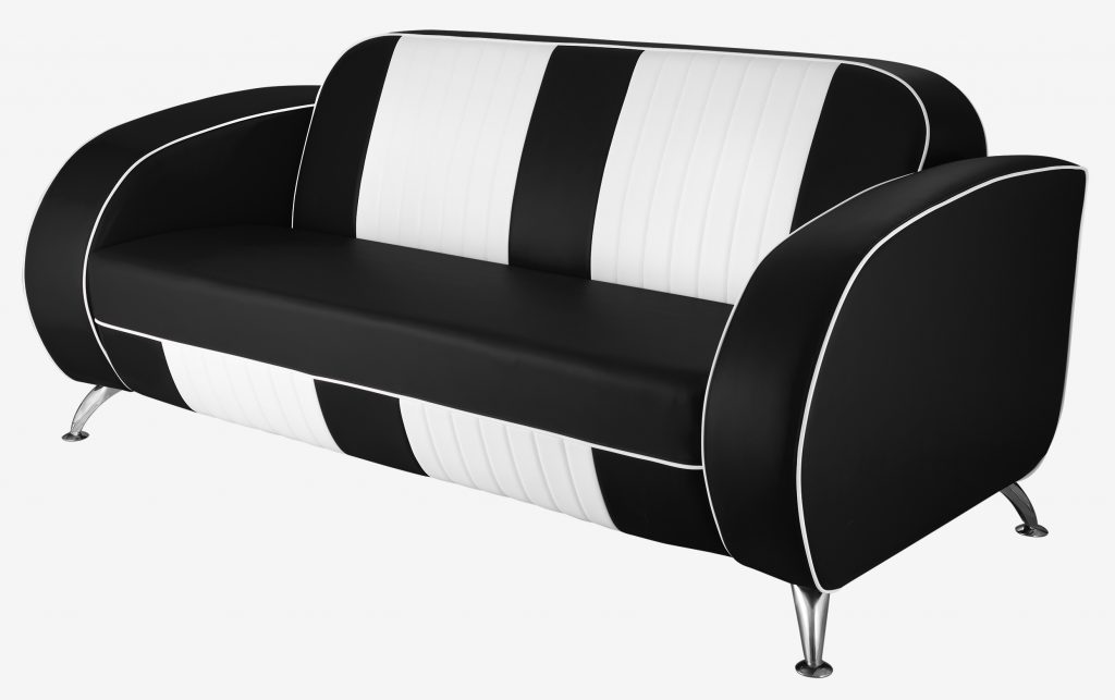 Visible seams on backrest with curved vertical twin-colour effect, white edges in relief on seat and on backrest, with high quality finish.