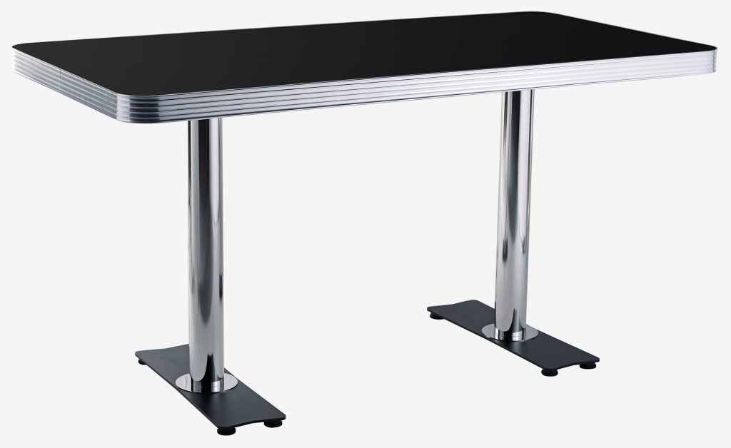 Table bases made of Laser cut steel which makes it possible to adjust the feet to compensate level differences of irregular floors.