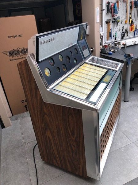 This beautiful Rock Ola model 440 from the golden year 1969. A 160 select. machine restored in our own workshop by our skilled craftsmen, with our well known guarantee of 5 years, invoice and delivery, filled with singles and all this for a soft price.