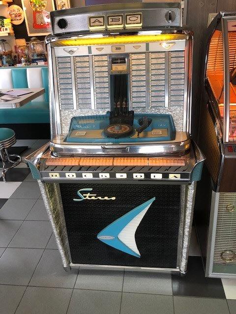 Deze zichtbare mekaniek jukebox doet ons denken aan de vleugels van een