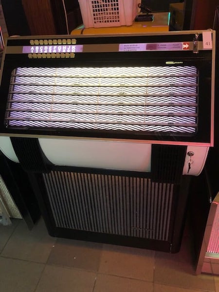 Seeburg Maurader from 1972, 100 sel, closed mecanism. In the Anderlecht colors, this smaller jukebox is the brother of the well-known other model from the FC de Kampioenen series.