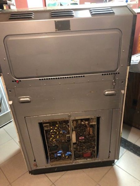 A "do-it-yourself" refurbisher, this valuable Seeburg model "V" from 1955, a very good basis, cell with needles is missing, needs to be re-chromed, but again a top jukebox in the offing, and this for a price under 6.000,00€ (finished value approximately 17.500,00), always welcome to come and see it without engagement = after appointment via jukeboxplezier@skynet.be