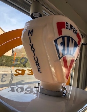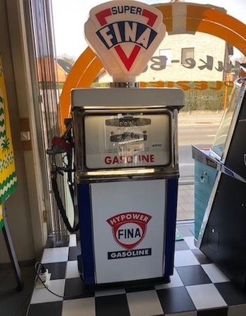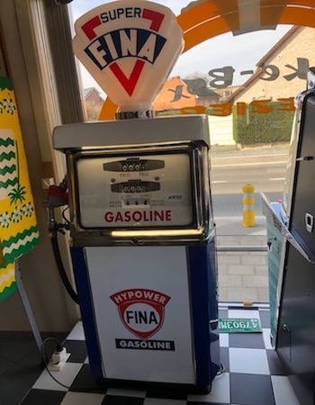 Benzinepomp van het merk Wayne, gespoten in de kleuren van Fina, van eind jaren '60 met echte glazen bol! Gratis levering in gans België. Prijs via mail.