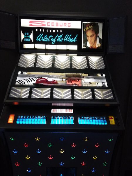Coming up soon = 1 x Seeburg DS met oortjes uit het gouden jaar 1962, zichtbare mekaniek, 160 selecties, 5 jaar waarborg, factuur, levering, gevuld met 80 singles uit te kiezen in onze platenkamer !