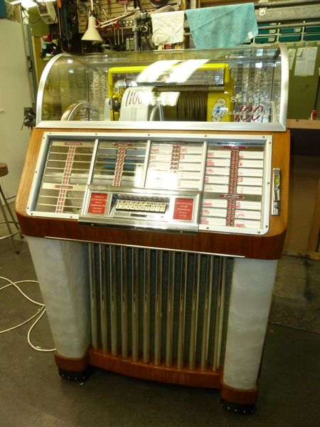 Seeburg C uit 1952, 5 jaar waarborg, factuur, gratis singles en uitgetypte titelkaarten, levering, dienst na verkoop. Prijs alléén via jukeboxplezier@skynet.be