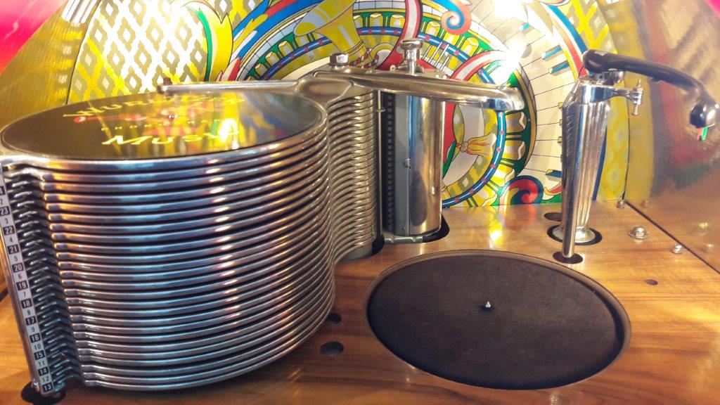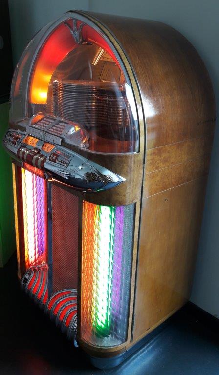 Een hele mooie Wurlitzer1100, deze 78 toeren jukebox dateert uit 1948, slechts 7000 stuks van gebouwd.