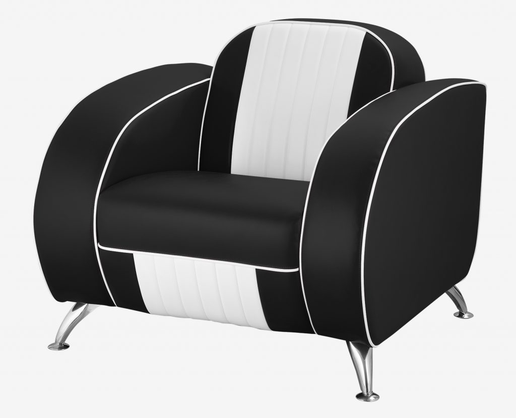 Visible seams on backrest with curved vertical twin-colour effect, white edges in relief on seat and on backrest, with high quality finish.